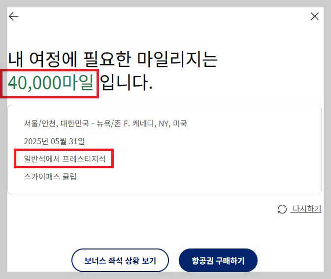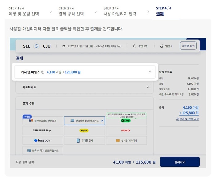 📌항공권 일부금액 마일 사용 (캐시 앤 마일즈)