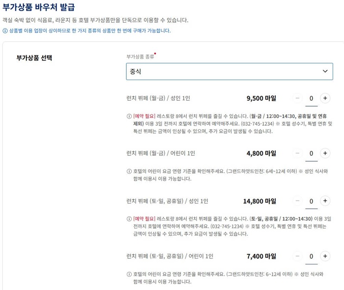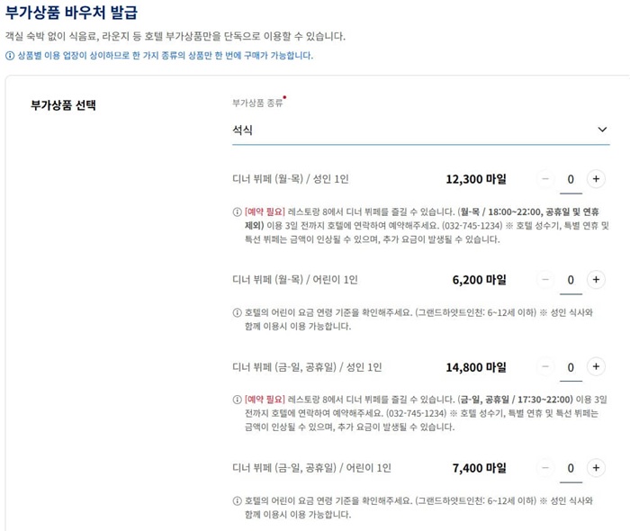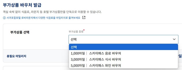 대한항공 마일리지 사용하여 호텔 숙박, 음료,식사,와인 바우처 구매가 가능하다.