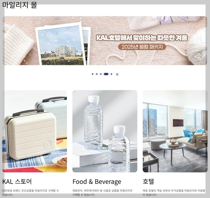 대한항공 마일리지 사용하여 호텔 숙박, 멤버십 구매, 중식 구매, 석식 구매가 가능하다.