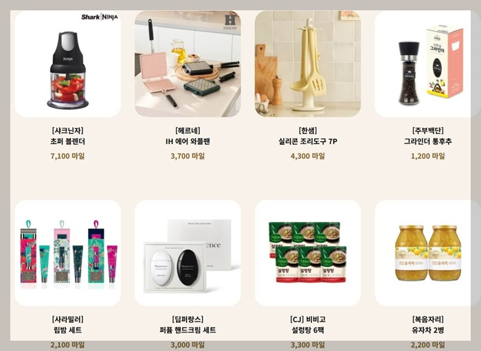 1️⃣ 마일리지 일반 쇼핑몰 : 다양한 상품, 모바일 쿠폰