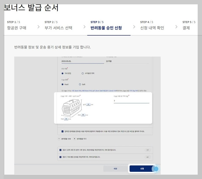 - 반려동물 운송 보너스 마일리지는 항공권 구매 이후에 발급할 가능합니다.