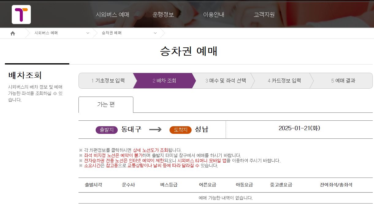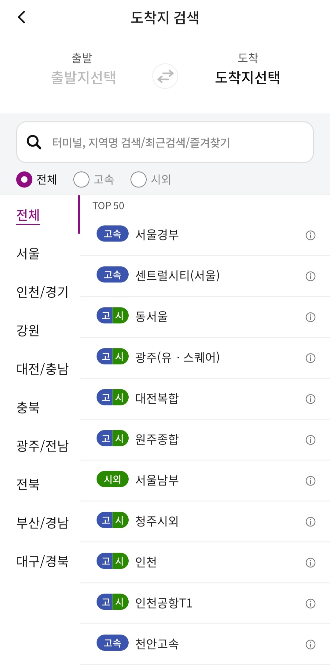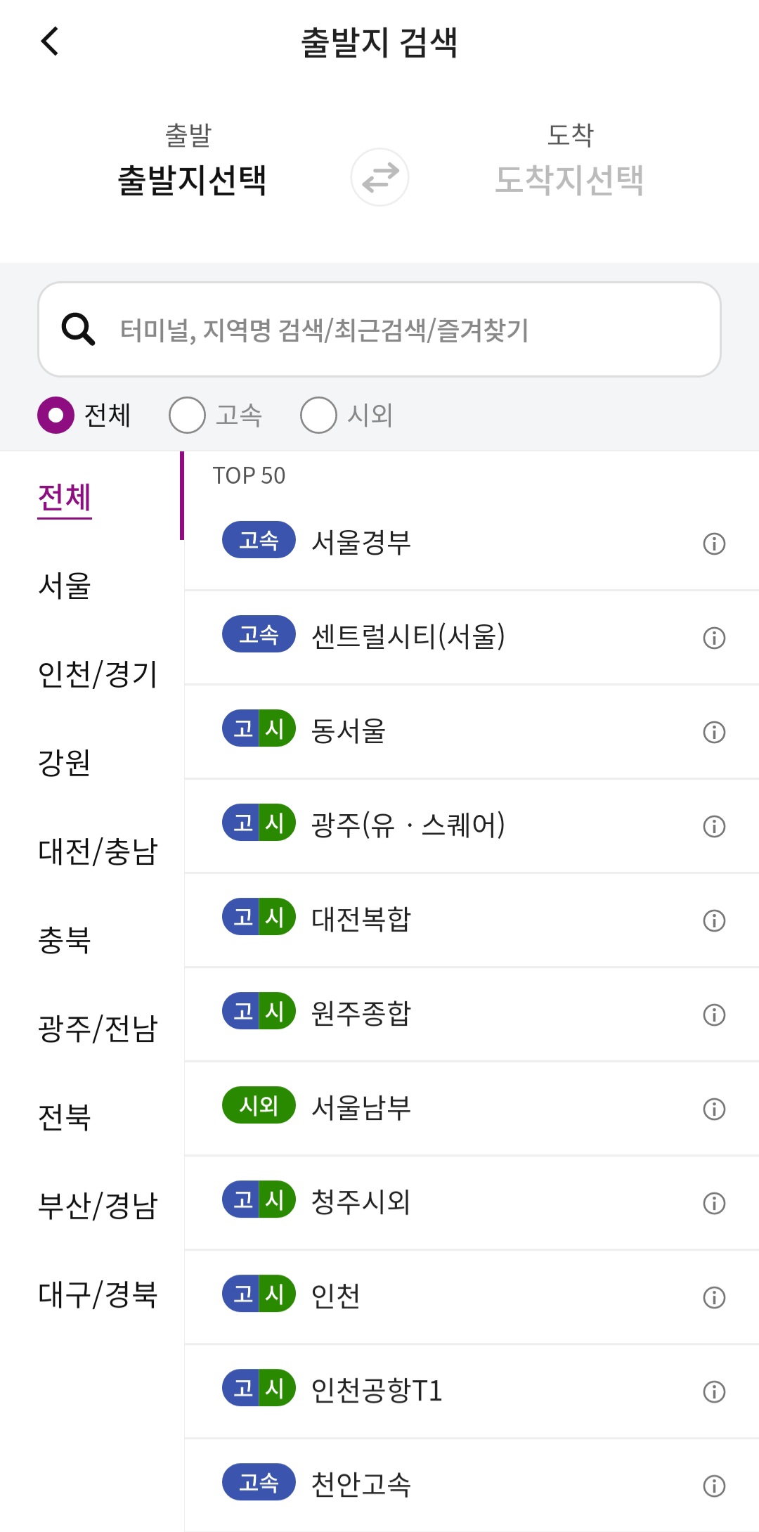 2️⃣ 출발 터미널 검색