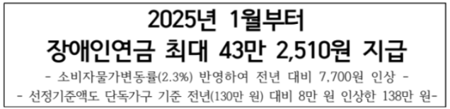 2025년부터 장애인연금 지급 금액이 인상되었습니다.