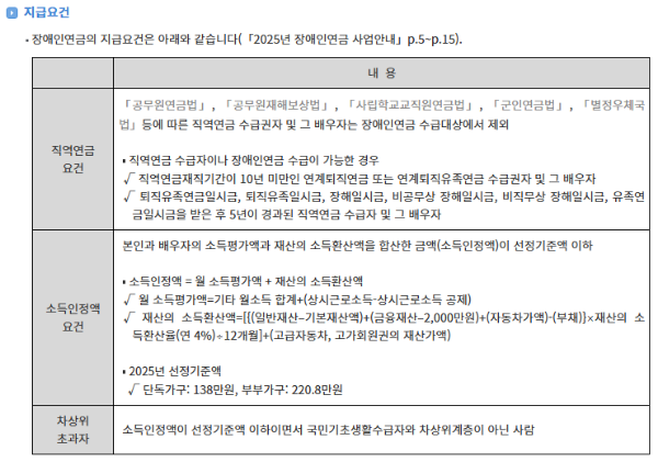 2025년 장애인연금 소득인정액 기준